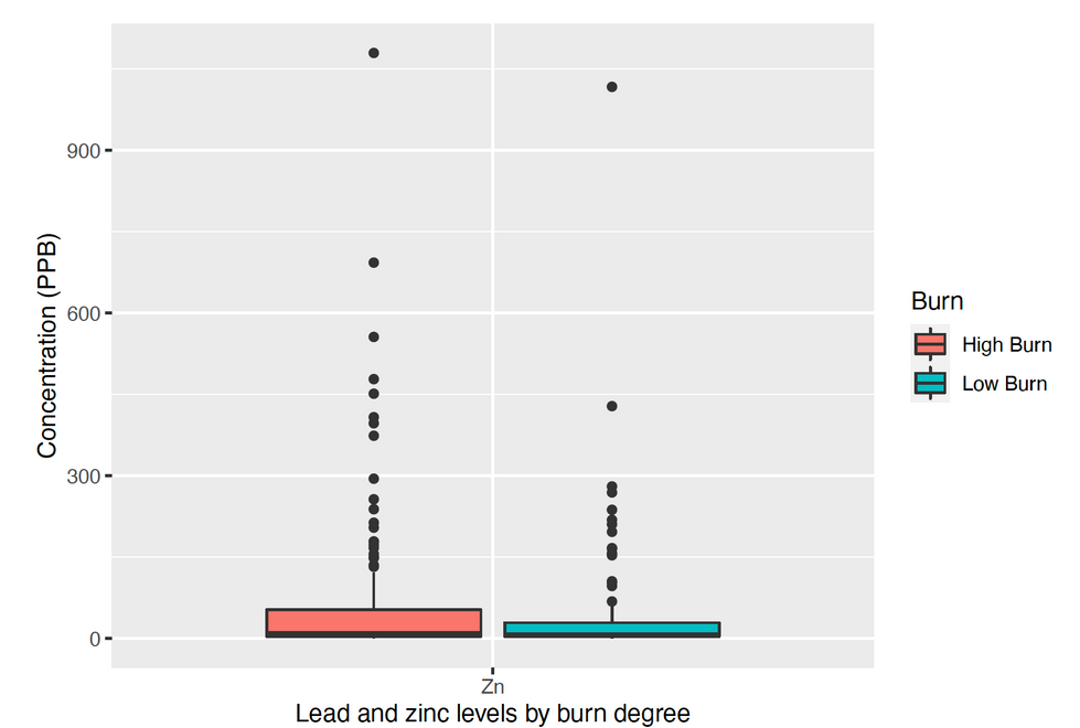 Wildfires that burn structures have the potential to introduce a host of contaminants and pollutants into our watershed. Major precipitation occurred before much of the emergency clean-up of the 2018 Camp Fire which induced runoff of heavy metals into the watersheds. Here, we analyzed what watersheds (i.e. high or low burn and high or low precipitation) were more likely to have greater concentrations of zinc and lead. We found both areas of high burn and areas with higher precipitation had significantly greater lead concentrations but not zinc.